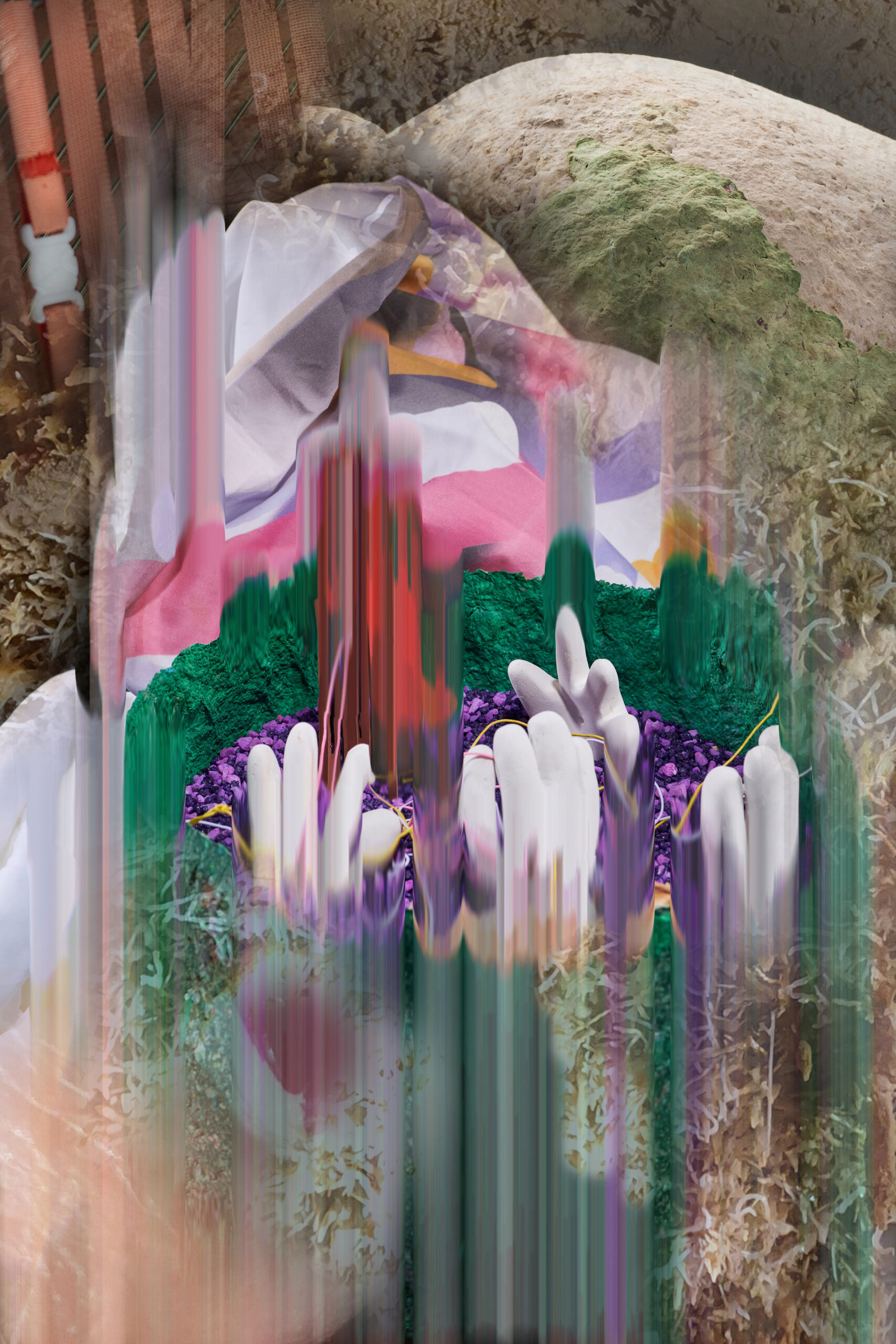 In this thick present, layers of stories constitute a single entity without us being able to trace a relationship of cause and effect. Our past is not dead but lives in our present, our future already exists in the gestures, acts and situations that we experience. This intimate and collective condition implies the need for a cohabitation and interconnection with the organic and inorganic things that surround and compose us, within the abyss, the ruins, the (r)evolution, and the regeneration of the world. For Giuliana Zefferi, the thick present contains and involves hybridity.
