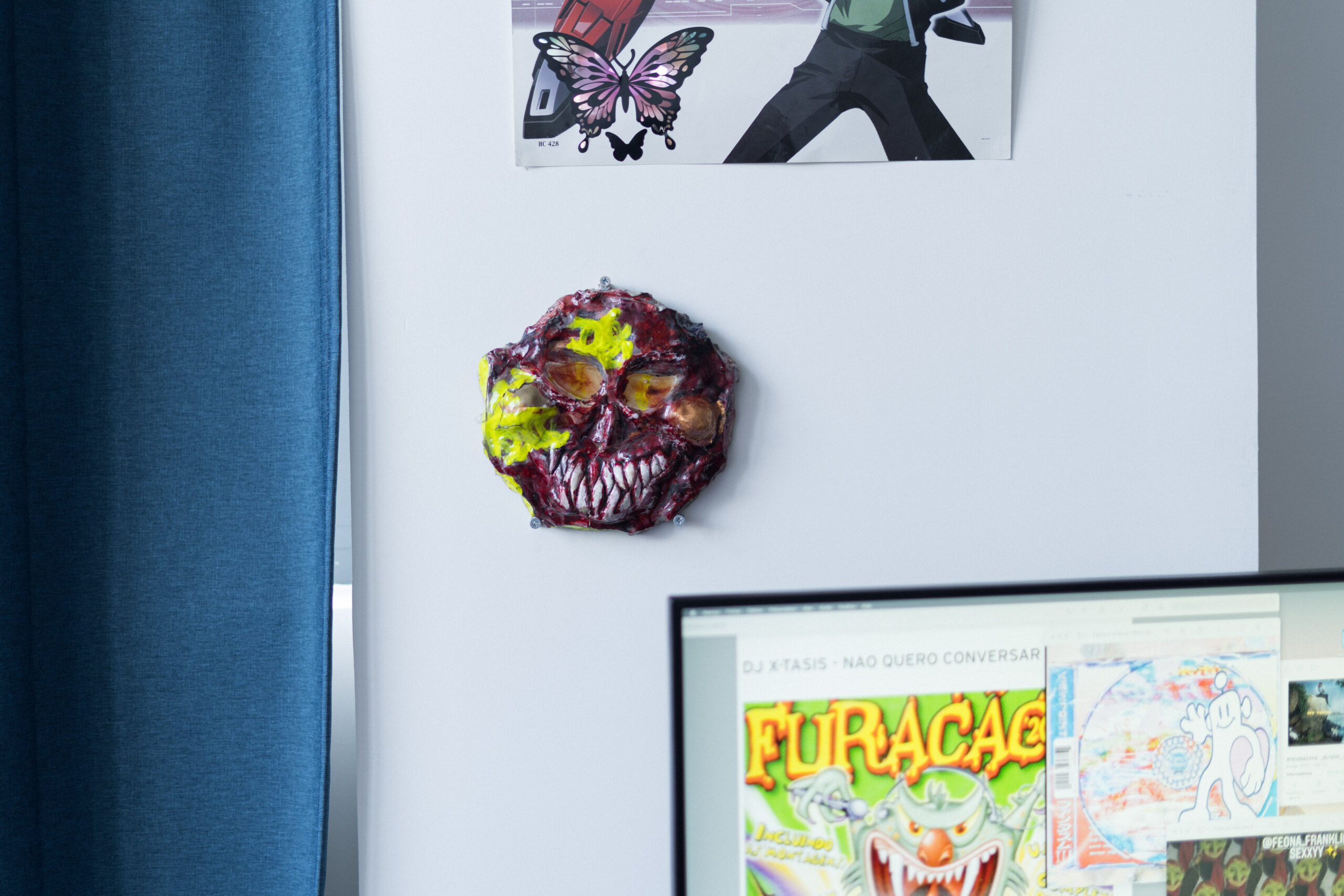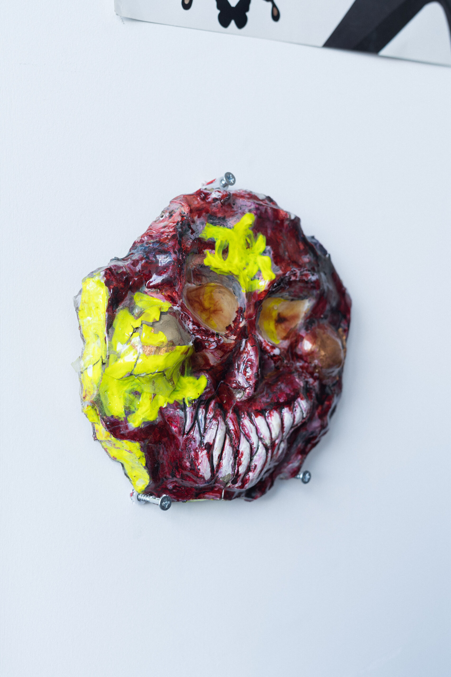 Louise Mervelet appropriates, discharges and materialises these archetypes. Coffins, roses, masks or medallions take shape as artworks, through the use of a variety of materials and disparate media: acrylic, plaster, silicone, chocolate or resin. Between fabula and video games, the artist connects the imaginary, the virtual and the ordinary by opening up new interpretations off the beaten track.