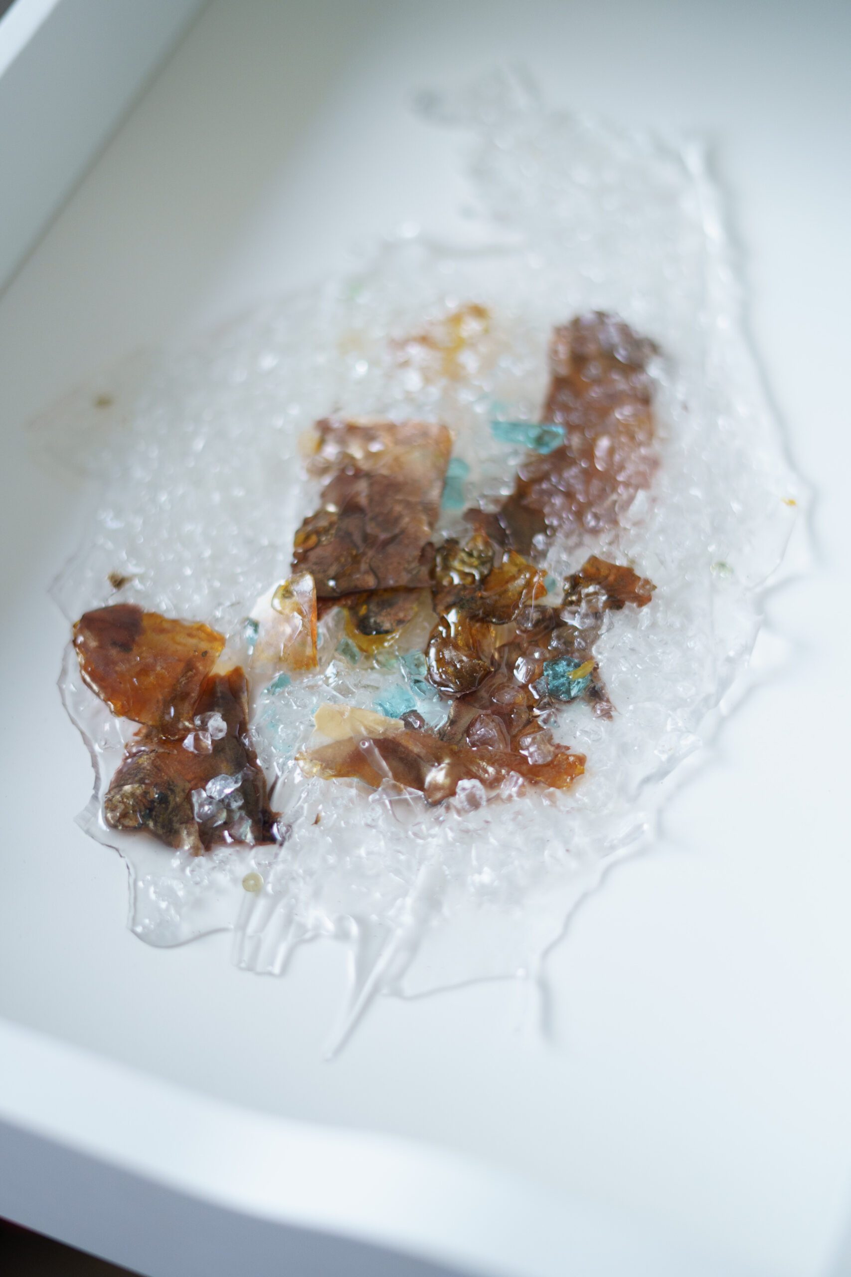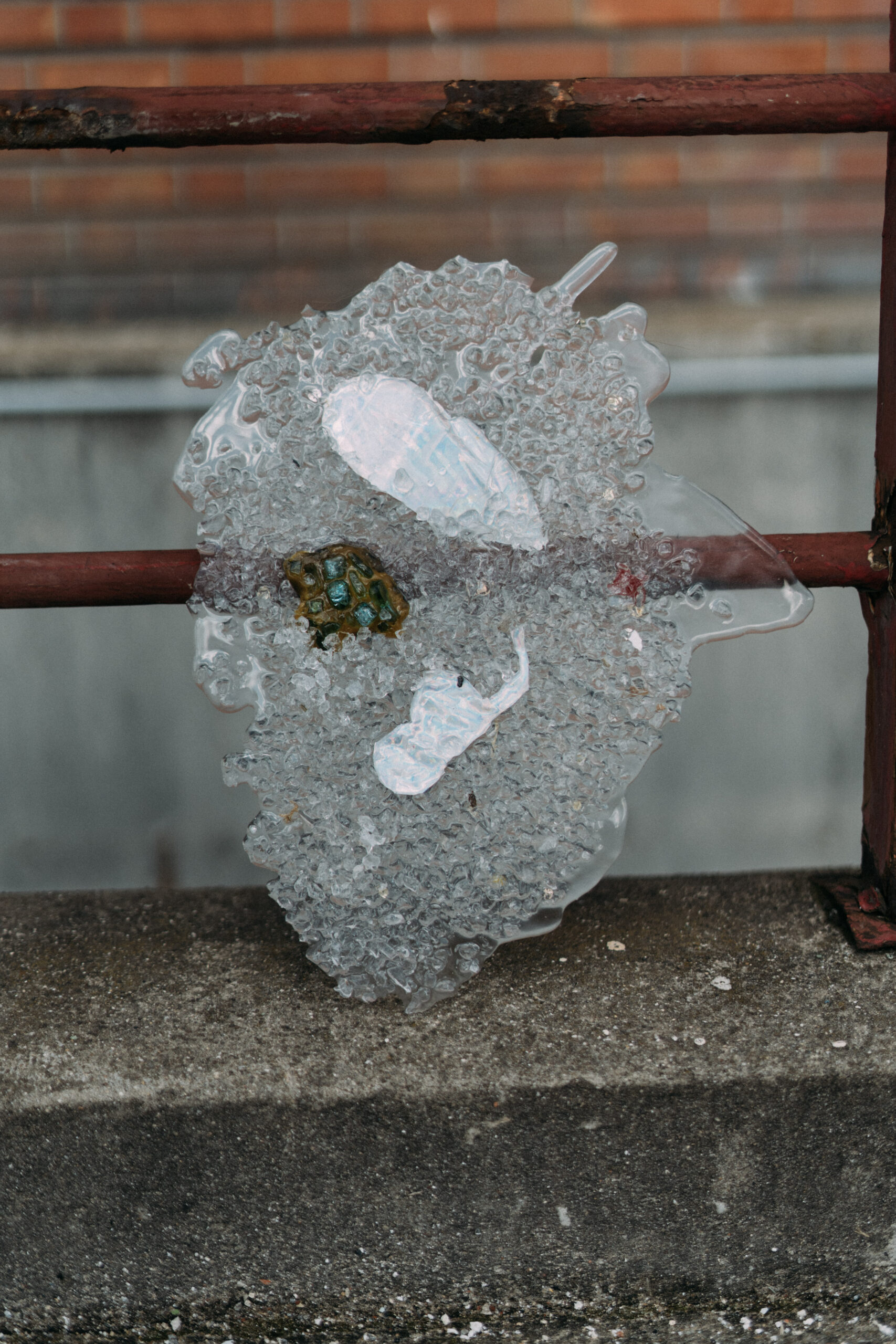 Louise Mervelet’s work appropriates protean media, passing from video-performance to the sculptural object, to the installation, before retracing the way – if necessary – backwards, from the whole to its fragment. She absorbs codes and stereotypes to expose them – or explode them – with a pop, psychedelic aesthetic, both mineral and liquid; between body, image and matter. A mobile material in the process of destruction, recovery and creation. Every element can be revived in a new momentum: glue, recovered objects, resin, plastic, foam.
