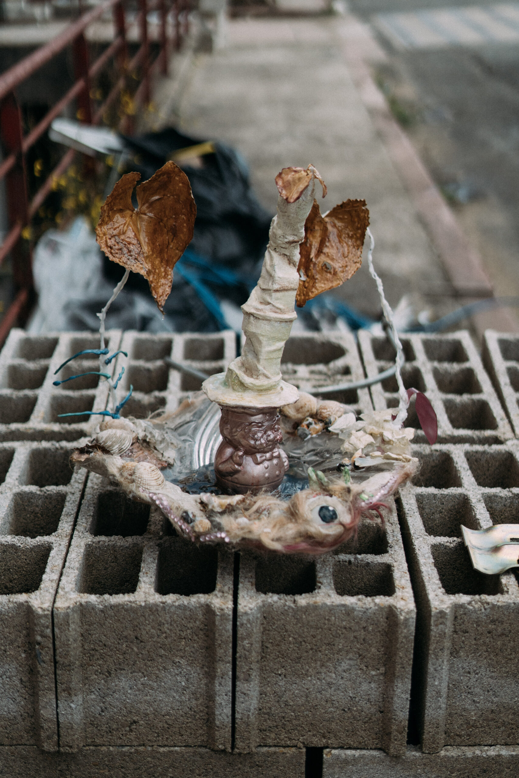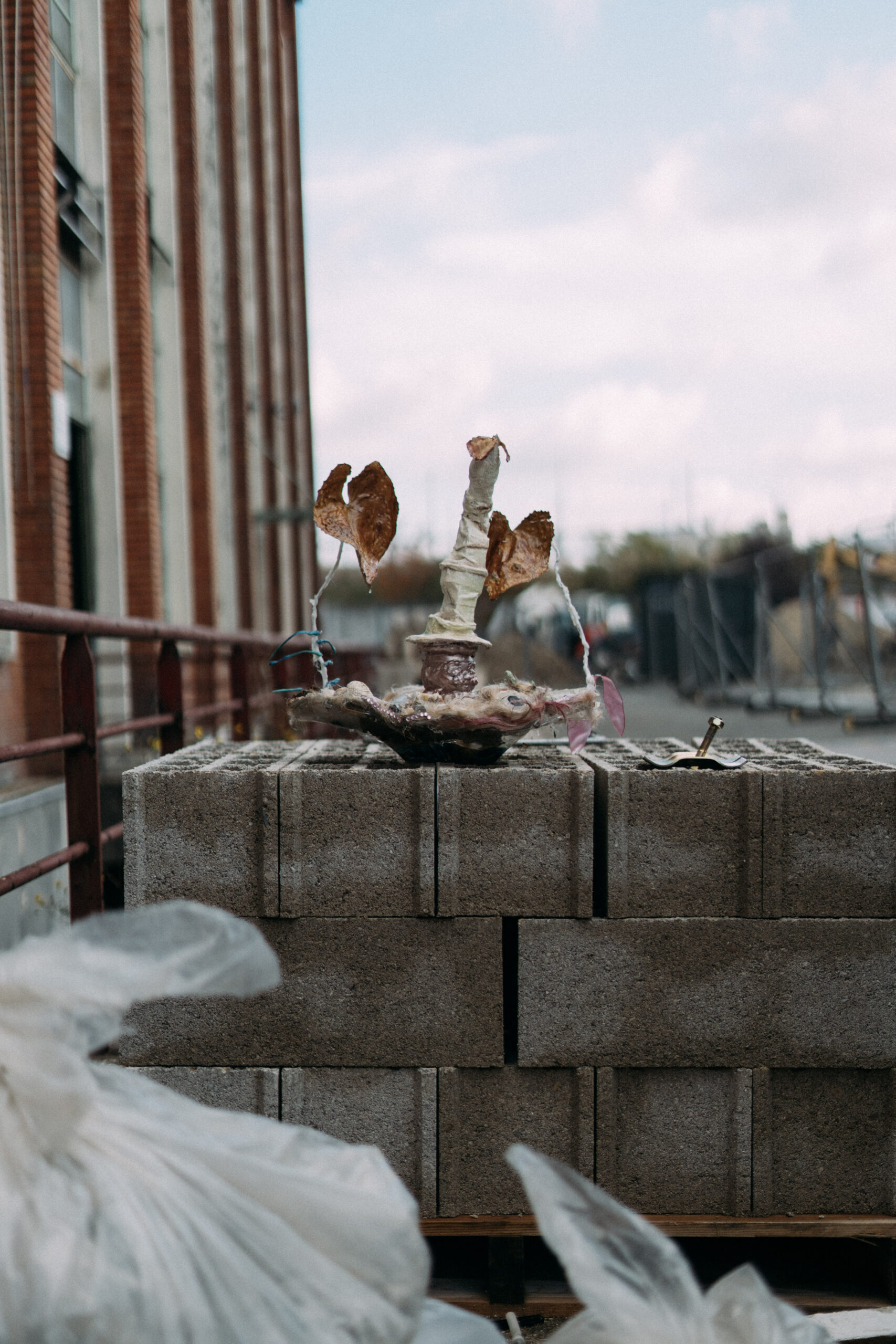 Louise Mervelet also gathers traces of experiences, places and personal relationships that then mingle with fiction. Forgotten in a corner, sleeping under the mass of other debris, these torn and recomposed pieces will – perhaps – one day fix their history by mutating into a sculptural object or a stage set.
